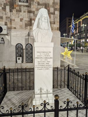 Bust of Chrysostomos A' Tavladorakis, marble bust outside Ag. Triada church, Piraeus, Greece