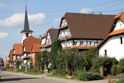 I villaggi dell'Alsazia si distinguono per l'architettura medievale tipica con case a graticcio colorate, mura cittadine e castelli sulle colline circostanti. Questi luoghi di produzione di vino conservano le strade acciottolate, le piazze del mercato e gli edifici sacri romanici. I centri storici comprendono edifici del Medioevo come torri di difesa e municipi, nonché chiese con sculture. La regione ospita anche collezioni storiche, in particolare manoscritti medievali.