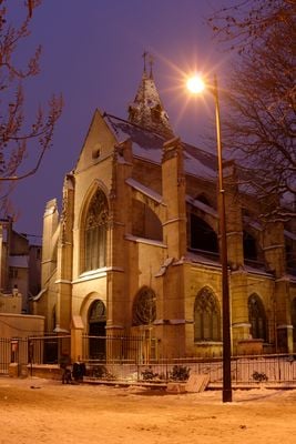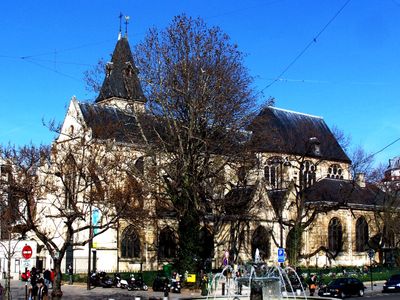 La chiesa sorge al 141 di Rue Mouffetard, con una grande finestra gotica sulla facciata occidentale e caratteristici contrafforti lungo le pareti esterne.