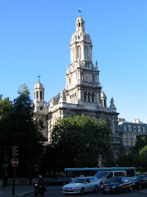 La chiesa Sainte-Trinité si estende per 90 metri con un campanile di 65 metri e presenta sculture dettagliate sulla sua facciata neorinascimentale.