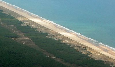 La Côte d'Argent si estende lungo la costa atlantica francese con ampie spiagge sabbiose e dune naturali in sequenza continua.