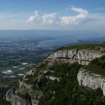 Il Salève forma una barriera naturale vicino a Ginevra, estendendosi per 20 chilometri con scogliere ripide sul lato occidentale e pendii dolci sul lato orientale.