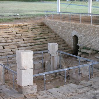 Il sito archeologico presenta rovine conservate di un anfiteatro, una villa romana, un cimitero e una sorgente termale con pannelli informativi.