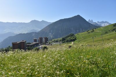 Il Mont Charvin si innalza a 2207 metri nel massiccio degli Arves, con un pendio ripido dopo Aulp de Marlens e tornanti su terreno roccioso.