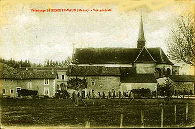 La chiesa Notre-Dame de Benoîte-Vaux sorge in una valle boscosa tra Verdun e Bar-le-Duc, con una facciata occidentale in stile toscano e un timpano di Cristo.