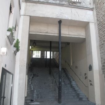 Originariamente conosciuta nel 1729 come una strada senza uscita e successivamente come impasse du Pont aux Biches, fu ufficialmente riconosciuta come passaggio pubblico nel 1881 con la costruzione di una scala che la collegava a Rue Meslay. Questa formalizzazione rifletteva i miglioramenti urbani del XIX secolo volti a facilitare il movimento dei pedoni nelle aree storiche della città.