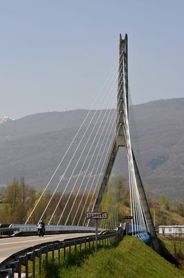 Gli ingegneri Jean-Vincent Berlottier e Alain Spielmann hanno progettato questo moderno ponte strallato nell'ambito dei miglioramenti infrastrutturali dell'Alvernia-Rodano-Alpi.