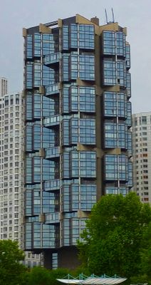 Tour Totem, Grattacielo residenziale a Front de Seine, Parigi, Francia.
