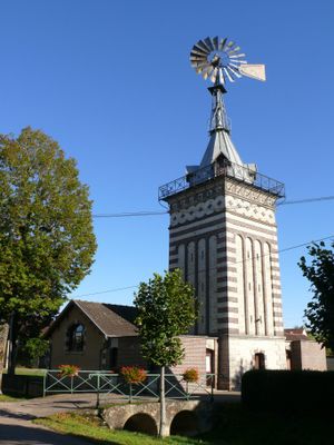 Mairie-lavoir et éolienne d'Arthonnay