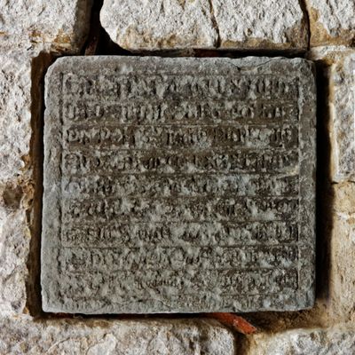 Foundation stone of the Our Lady of the Assumption church in Fanjeaux, foundation stone of the parish church of Fanjeaux, laid by Rector Arnaud Seguier in 1278