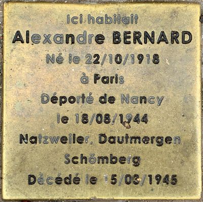 Stolperstein à la mémoire d'Alexandre Bernard, stolperstein à Fontenay-sous-Bois, France