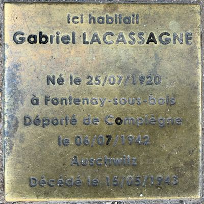 Stolperstein à la mémoire de Gabriel Lacassagne, stolperstein à Fontenay-sous-Bois, France