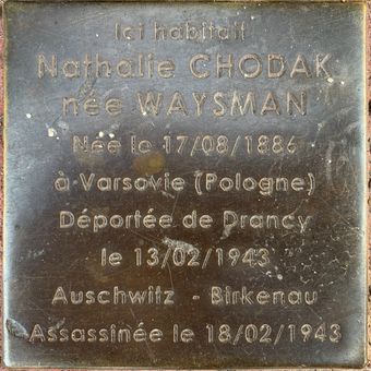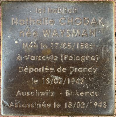 Stoleperstein à la mémoire de Nathalie Chodak, stolperstein à Fontenay-sous-Bois, France