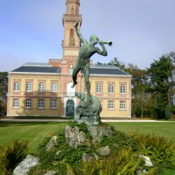 Creata dallo scultore Edmond Desca, L'Ouragan raffigura una figura che soffia in un corno durante una tempesta con un piede su un ramo sradicato.