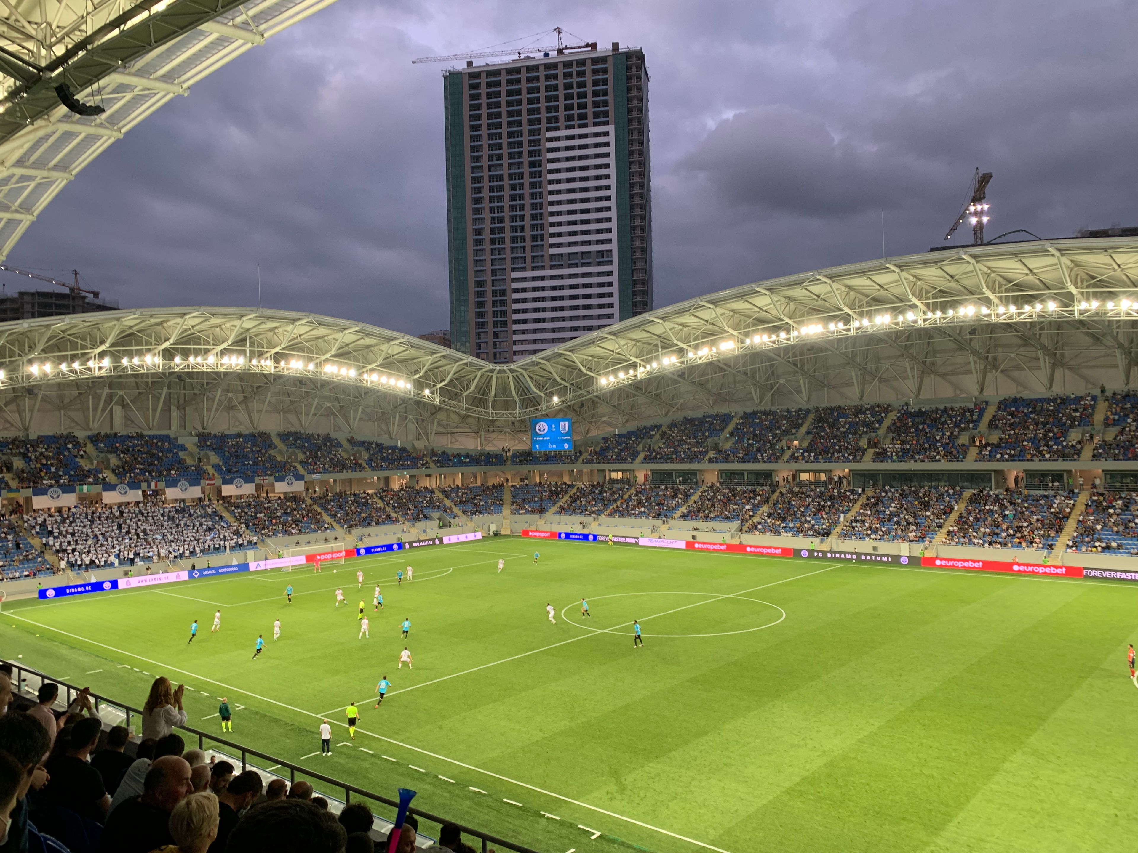 Il sistema di illuminazione esterno dello stadio cambia colore per mostrare le bandiere della Georgia, della regione Adjara o della squadra Dinamo Batumi.