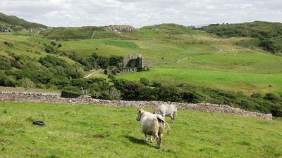 I visitatori raggiungono le rovine attraverso un sentiero da Sky Road, richiedendo calzature resistenti per il terreno irregolare.