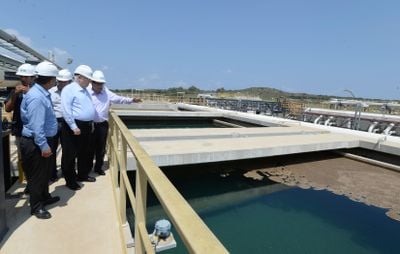 Due teste di presa posizionate a 1,15 chilometri dalla costa raccolgono l'acqua marina per il trattamento e la distribuzione nazionale.
