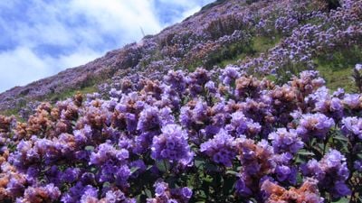 La fioritura delle Neelakurinji, che si verifica ogni dodici anni, trasforma il paesaggio del parco in un mare di petali blu.