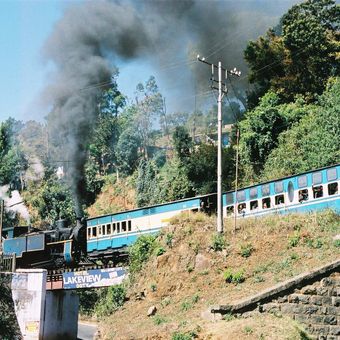 Il Nilgiri Mountain Railway è una ferrovia a scartamento ridotto nel Tamil Nadu che percorre 46 chilometri da Mettupalayam a Udagamandalam. I treni salgono pendii ripidi attraverso aree boschive e paesaggi aperti coltivati a tè lungo il percorso.