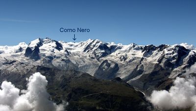 Il Corno Nero raggiunge i 4.322 metri nelle Alpi Pennine, caratterizzato da pareti ripide sul versante italiano e pendii più graduali verso la Svizzera.