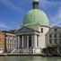 La chiesa presenta una cupola centrale rivestita in rame di 20 metri di diametro e colonne corinzie all'ingresso principale.