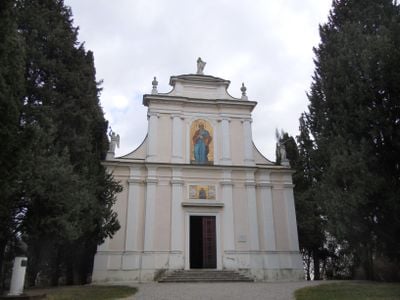La chiesa fu costruita nel 1880 per conservare i resti dei soldati caduti durante la Battaglia di Solferino nel 1859.