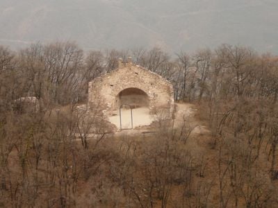 La chiesa di San Pietro si erge come resti di pietra tra le colline di Altenburg, mostrando elementi architettonici religiosi dell'Alto Adige.