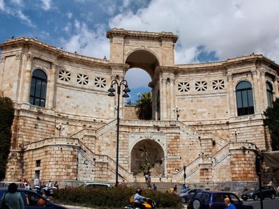 La struttura integra le mura medievali con l'architettura neoclassica, collegando il quartiere superiore Castello al quartiere inferiore Marina.