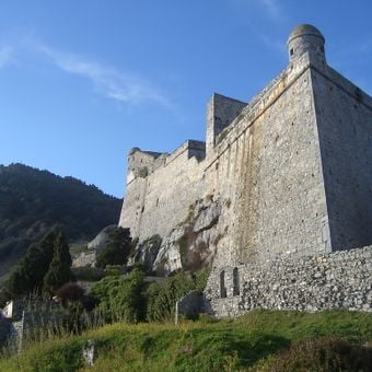 Castello di Porto Venere, Castello medievale su altopiano roccioso a Porto Venere, Italia.