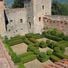 La fortezza triangolare presenta una torre semicircolare e due torri quadrate gemelle collegate da mura difensive in pietra squadrata.