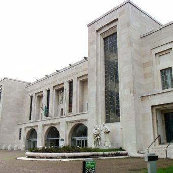 L'edificio rappresenta il monumentalismo architettonico attraverso forme geometriche, layout simmetrici e integrazione dei reparti medici nei padiglioni.