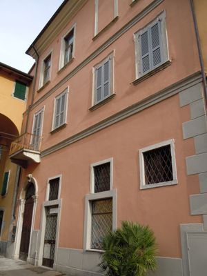 Il palazzo presenta due piani con opere in pietra decorativa ed elementi architettonici che rappresentano le residenze nobiliari del nord Italia.