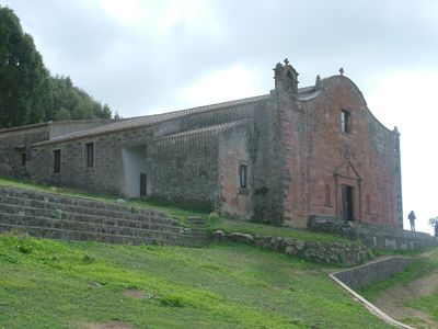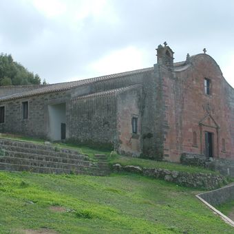 Il santuario in pietra sorge in posizione elevata vicino al fiume Tirso, con elementi architettonici sardi e una navata centrale con due cappelle.