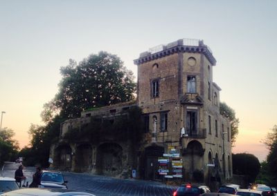 Villa La Decina presenta una struttura doppia con torre, archi ellittici e porticato superiore costruita principalmente in tufo e pietra piperno.