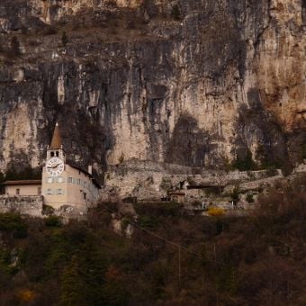 La via ferrata Monte Albano attraversa pareti verticali calcaree, dotata di cavi metallici, anelli incorporati e diverse sezioni di arrampicata sopra Mori.