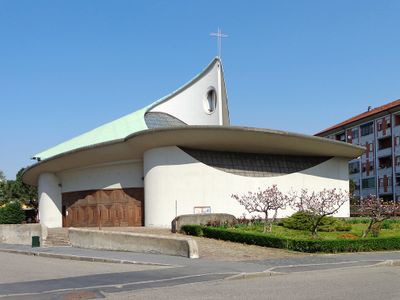 Costruita nel 1963, questo edificio religioso rappresenta il movimento architettonico del dopoguerra che ha trasformato il paesaggio urbano delle aree metropolitane del nord Italia.