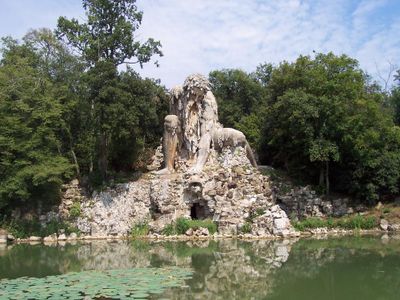 Colosso dell'Appennino, Scultura in pietra nel Parco di Pratolino, Vaglia, Italia.