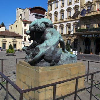 Hercules Strangling the Nemean Lion, Scultura in bronzo in Piazza Ognissanti, Firenze, Italia