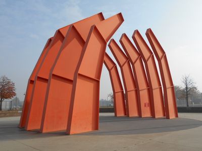 Alberto Burri ha realizzato questa scultura monumentale nel 1990 come parte del progetto inaugurale del complesso Pala Mauro De André.
