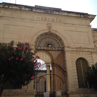 L'Antico Mercato presenta facciate in pietra tradizionali e numerose sezioni dedicate a prodotti freschi, frutti di mare e specialità regionali siciliane.