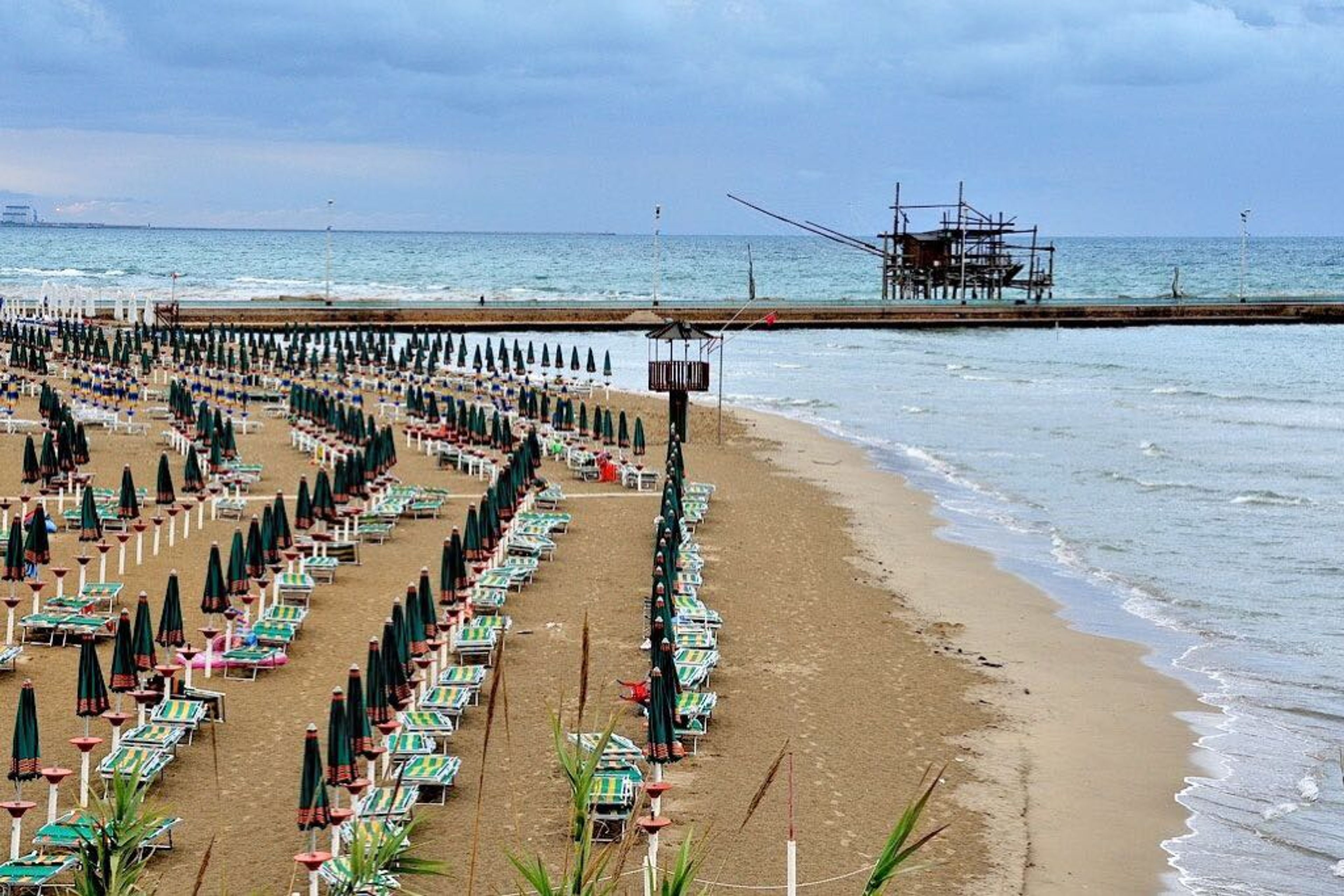 I trabocchi, macchine da pesca tradizionali, costeggiano il litorale e ora fungono da ristoranti che servono specialità marine abruzzesi.