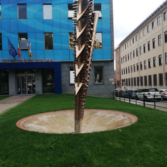 Cuneo con frecce, scultura di Arnaldo Pomodoro