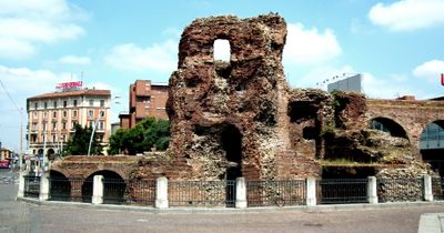 Le strutture rimanenti del Castello di Galliera si trovano vicino a Porta Galliera, con mura difensive ed elementi architettonici del periodo medievale.