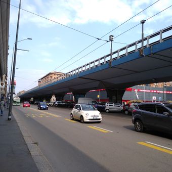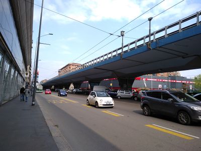 Il sistema stradale sopraelevato si divide in due viadotti: una sezione di 350 metri sopra Viale Scarampo e un tratto di un chilometro fino al Ponte della Ghisolfa.