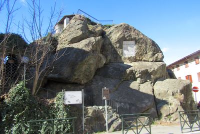 Durante il periodo della glaciazione Mindel, questo grande masso fu trasportato nella sua posizione attuale dal movimento glaciale attraverso la Valle di Susa.
