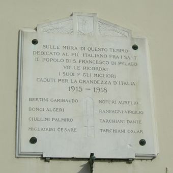 Lapide e lastra ai Caduti di San Francesco, due targhe a ricordo dei Caduti di San Francesco di Pelago nella prima e seconda guerra mondiale