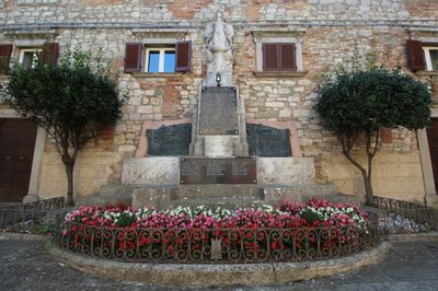 Monumento ai caduti a Monte Castello di Vibio, World War I memorial (with additional WWII sign) in Monte Castello di Vibio, Province of Perugia, Umbria, Italy