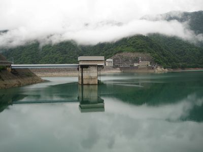 La struttura della diga copre un bacino di 400 chilometri quadrati, raccogliendo l'acqua dello scioglimento stagionale delle nevi del Monte Hakusan.