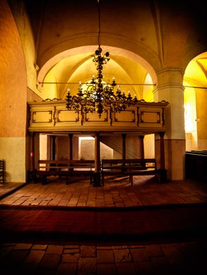 Pulpit of Lutheran church in Zlēkas