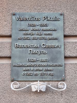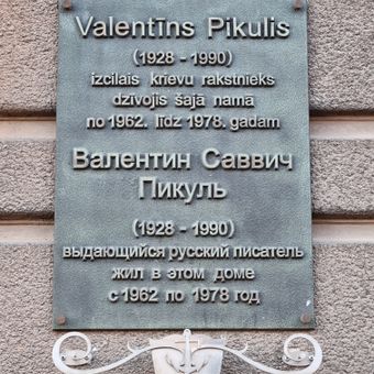 Commemorative plaque to Valentins Pikulis, plaque in Riga